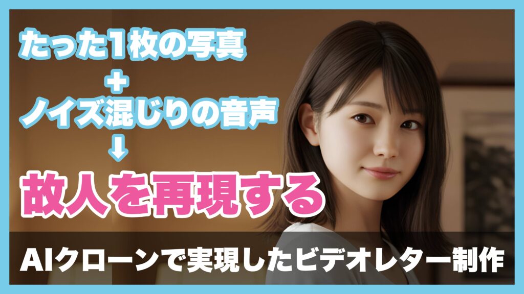 2025.03.20 プレスリリース たった1枚の写真とノイズ混じりの音声から、故人の「声」と「姿」を甦らせる──AIクローンで実現したビデオレター制作プロジェクト 2025年3月20日 株式会社MAKE A CHANGE(本... Read More